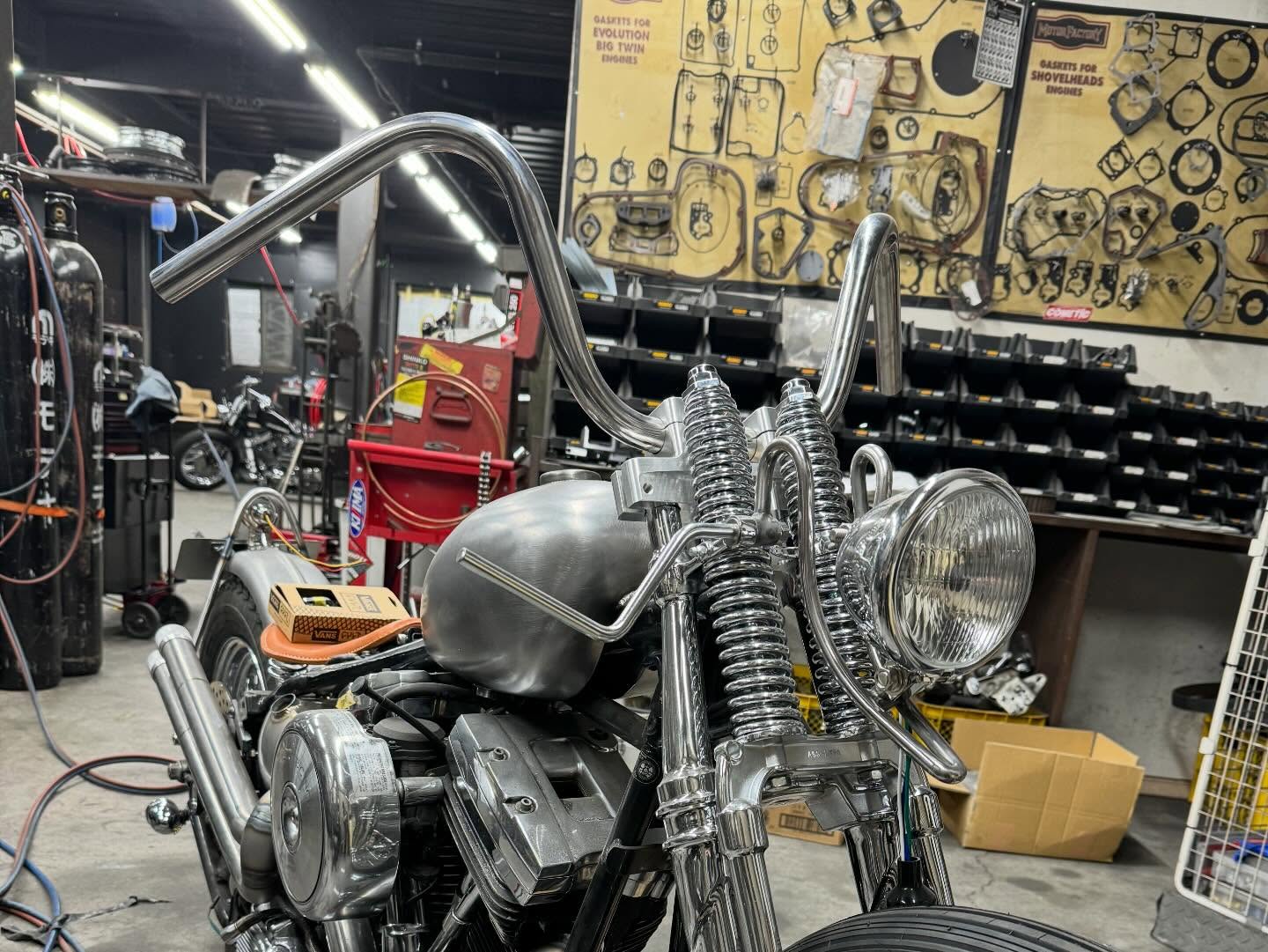 石川県 Y様 EVO 74 COMP 石川県最後の1台のご紹介 仲間の方達はブラック仕様ですがY様だけはメッキ仕様となり 逆に目立つ車両となりました🏍️✨ 車両は去年の10月には完成しておりましたが仲間の車両でエンジンオーバーホールに時間が掛かってしまい 大変ご迷惑をお掛けしまして申し訳ございませんでした。 そして待っている間にCCバーも追加でワンオフにて製作させて頂きました🛠️ありがとうございます🥲 #ハーレーダビットソン #エボリューション #ナロー74スプリンガー #ジョッキーシフト #ハーレーカスタム