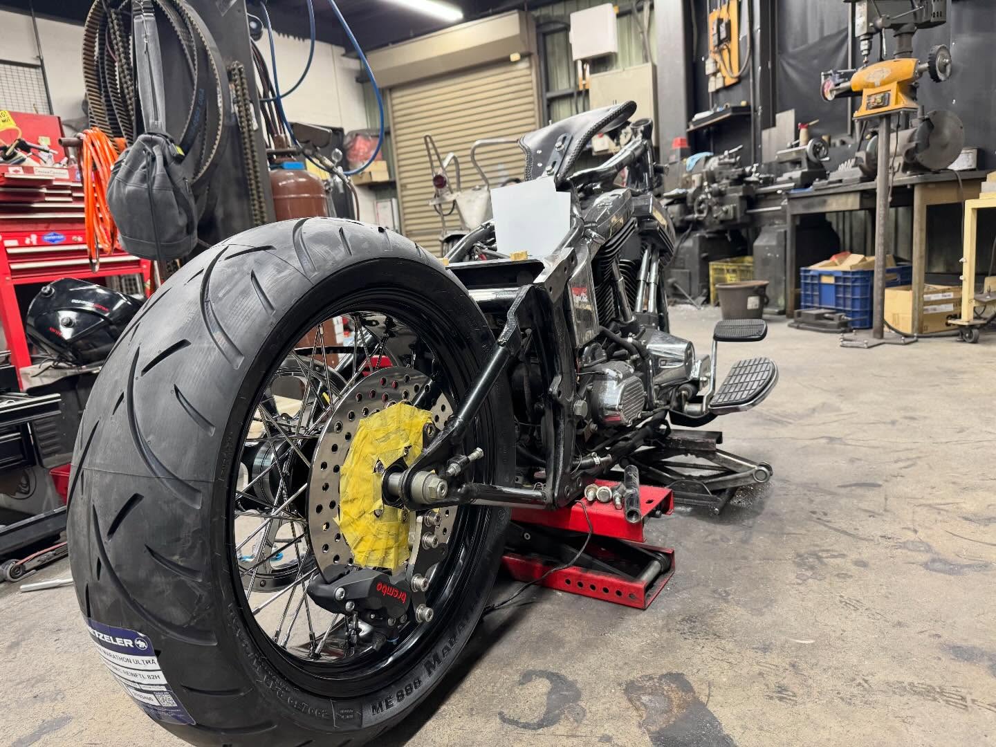 愛知県 EVO 74 COMP 去年の夏頃にリアタイヤ200ワイドのコンプリート車両をご契約頂きました! 来店当初から各パーツやワンオフパーツの角度や曲がり具合を細かく指定して頂きオーナー様のこだわりが詰まった一台の制作となりました🏍️✨ #ハーレーダビットソン #エボリューション #harley #evolution #ハーレーカスタム